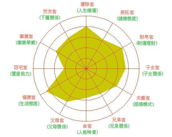 福德宮:顯示個人思想、心態與慾望的強弱。